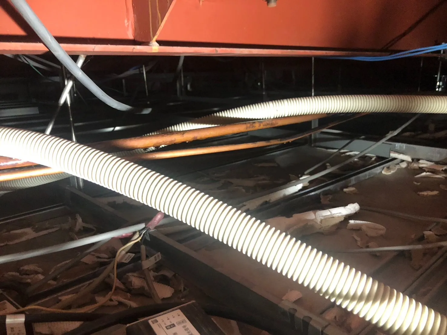 カビバスターズ東海が現場で実際に対応した事例の中で、特に印象的だったのが「天井裏に侵入した害獣によって、エアコン配管の断熱材が破損し、結露による水漏れが発生したケース」です。一見すると害獣被害と水漏れは無関係のように思えますが、実は密接に関係しており、さらに“カビ”という深刻な二次被害へとつながっていきます。