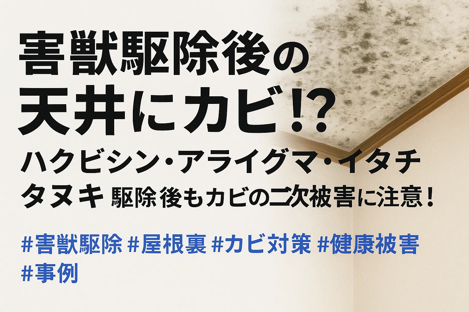 駆除して終わりじゃない!フン尿・湿気・断熱材汚染が原因でカビが大量発生!?天井裏の二次被害と再発リスクをカビバスターズ東海が徹底解説!